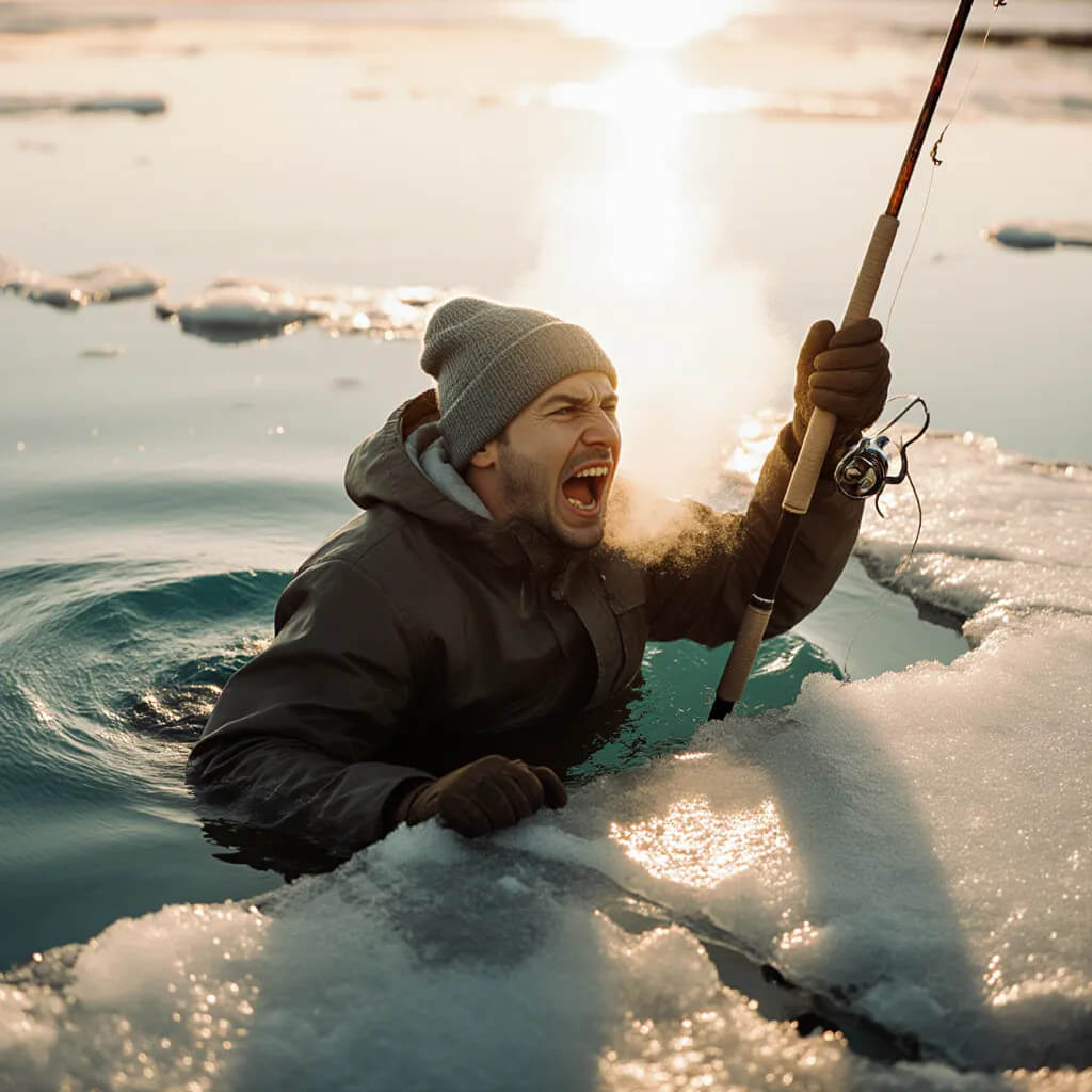 • Panik kann zu kraftzehrenden Bewegungen führen, die das Eis weiter brechen lassen.